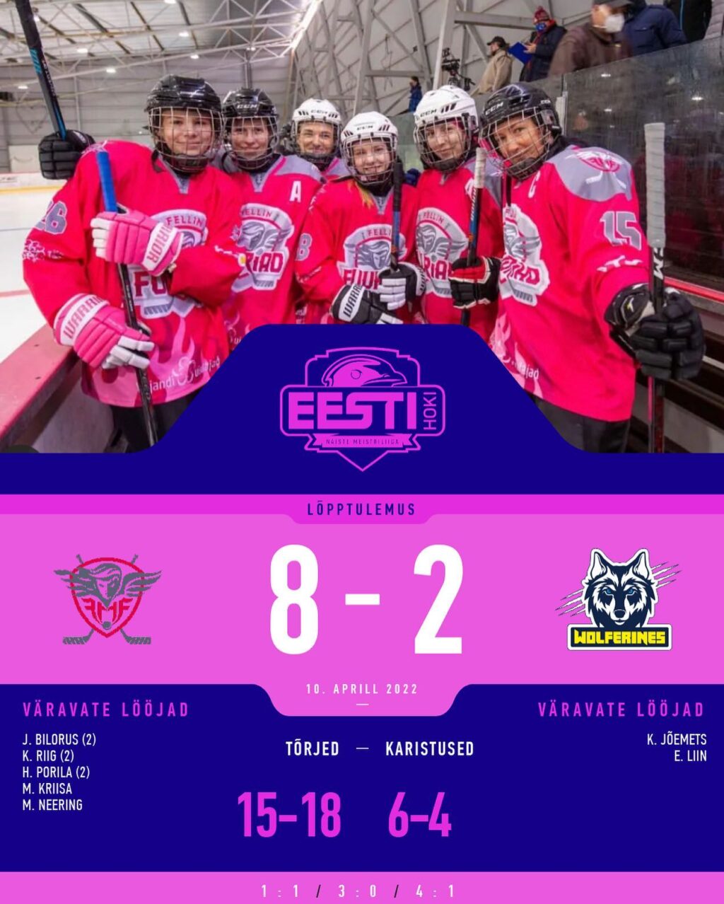 Naiste Hokiliiga esimeses mängus 5.-6. kohale alistas Viljandi HK Fellin Fuuriad Tartu treeninghallis Tallinna HC Wolferinesi 8:2 (1:1, 3:0, 4:1).