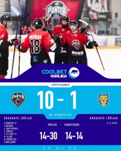 Coolbet Hokiliiga tänastes mängudes said suured võidud liidriks tõusnud Tallinna HC Panter ja Kohtla-Järve HC Everest. Tallinna HC Panter alistas...